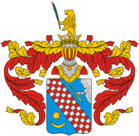 В щите имеющем голубое поле диагонально к правому верхнему углу означена полоса, составленная из серебряных и красного цвета шахмат. Над полосой видна выходящая из облака рука в серебряных латах, держащая ланец. Ниже полосы изображена золотая восьмиугольная звезда и под ней того же цвета металла луна рогами вверх (польский герб Лелива).