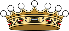 На щите баронская корона и на ней два шлема с баронскими же коронами; на правом шлеме два пня, подобные вышеописанному и между ними павлиний хвост; на левом шлеме 6 знамён, поочередно красных и голубых, в между ними зелёный древесный лист. Намёт справа красный, подложенный серебром; слева голубой, подложенный золотом.