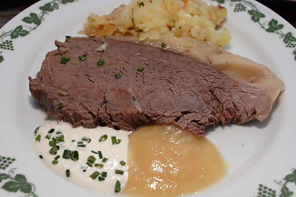 Однако своей популярностью отварная говядина во многом обязана Францу Иосифу I. Император, придерживаясь умеренной и простой диеты[3], сделал её постоянным блюдом своего частного стола[4], отступив тем самым от аристократических обычаев, отдававших предпочтение жаркому[2]. Рецепт, указанный в его меню под французским названием pièce de bœuf, предусматривал использование огузка телятины, отваренного вместе с морковью, репой, сельдереем и луком. Мясо подавали нарезанным тонкими ломтиками в собственном бульоне, обогащённом мозговыми костями (оссобуко), с гарниром из хрена и тушёных яблок. Мясо было настолько нежным, что император мог легко есть его одной вилкой[4].