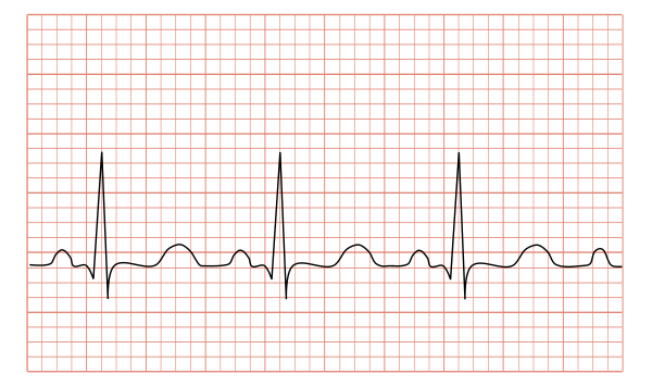 - Желудочковая форма даёт изменённый комплекс QRS (аналогичный желудочковой экстрасистолии или блокаде ножки Гисса).