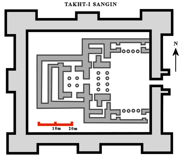 Вероятнее всего, Тахти-Сангин связан со знаменитым Амударьинским кладом — комплексом золотых и серебряных вещей и монет, датируемых VI—III вв. до н. э.