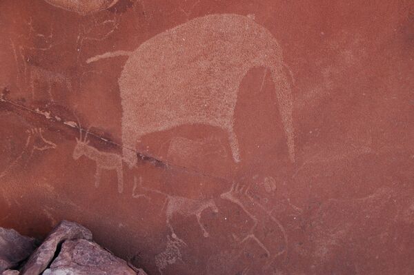 Похоже, что на одном из наскальных рисунков изображён очень редкий вид носорога — чёрный носорог. Удивительно, что здесь, в 100 км от океана, был обнаружен рисунок тюленя.