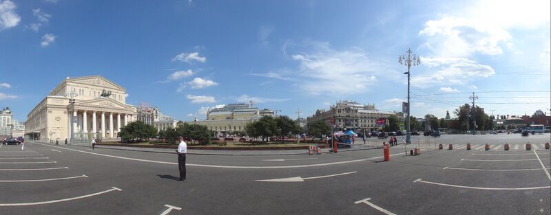 Советский художник Юрий Пименов изобразил Театральную площадь в 1937 году на картине «Новая Москва».