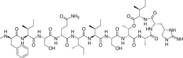 Теиксобактин состоит из 11 аминокислотных остатков, представляя собой макроциклический депсипептид, по гипотезе его первооткрывателей синтезируется в грамотрицательной бактерии Eleftheria terrae (англ.) нерибосомными пептидными синтетазами Txo1 и Txo2[2]. Пептид имеет несколько необычных особенностей, в том числе четыре D-аминокислоты, метилированный фенилаланин и не-протеиногенную аминокислоту эндурацидидин. Txo1 и Txo2 вместе состоят из 11 модулей, а каждый модуль, как полагают, последовательно добавляет одну аминокислоту к растущей пептидной цепи. Первый модуль имеет домен метилтрансферазы, который метилирует N-концевой фенилаланин. Замыкание кольца между треонином и последним изолейцином катализируется двумя С-концевыми тиоэстеразными доменами Txo2, образуя лактон[2].