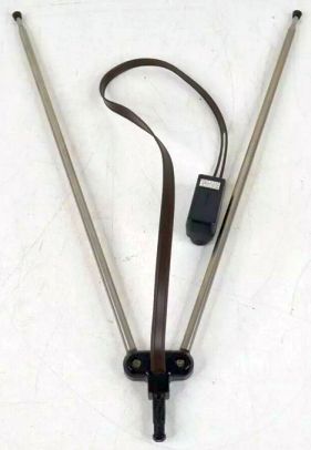 Самая старая и наиболее распространённая (по крайней мере в США) комнатная антенна — это кроличьи уши или заячьи уши, которые часто поставляются с новыми телевизорами[6]. Это простая полуволновая дипольная антенна для приёма VHF-диапазонов, состоящих в США из 54-88 МГц (диапазон I) и 174—216 МГц (диапазон III). Она состоит из двух телескопических штанг, прикреплённых к основанию, которые выдвигаются (примерно до четверти длины волны на 54 МГц) и могут складываться при хранении. Для лучшего приёма штанги следует настраивать чуть меньше 14 длины волны на частоте принимаемого канала. Однако диполь имеет широкую полосу пропускания, поэтому часто достаточный приём достигается без регулировки длины.