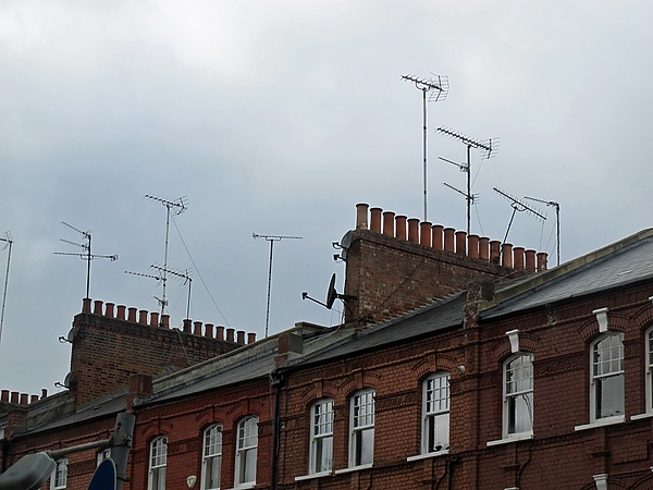 Антенны обычно размещают на крышах домов, иногда на чердаках. Установка антенны внутри помещения значительно ослабляет уровень доступного сигнала.[17][18] Направленные антенны должны быть ориентированы на передатчик, который они принимают; в большинстве случаев высокая точность не требуется. В некоторых регионах все телевизионные передатчики располагаются примерно в одном направлении и используют близкие по частоте каналы, так что одной антенны достаточно для всех. С одного передающего пункта может транслироваться несколько каналов. CABD (система коллективного приёма и распределения телевизионных сигналов) — это система, устанавливаемая внутри здания для приёма бесплатных ТВ/ФМ-сигналов, передаваемых по радио, и их распределения среди пользователей[19].