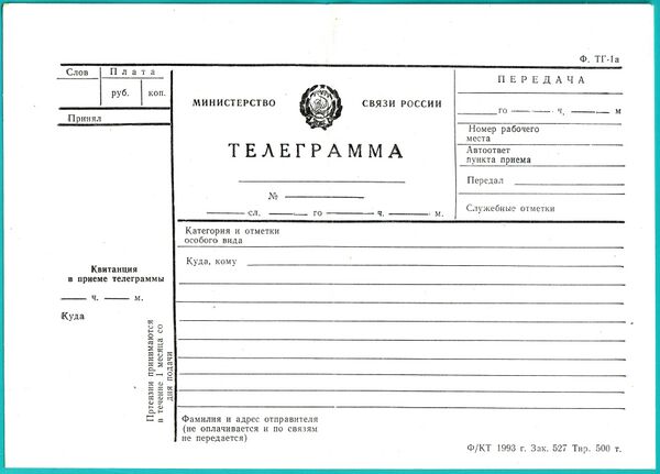 Ростелеком по-прежнему оказывает услуги передачи телеграмм[1].