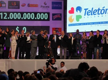 Первая кампания прошла в 1980 году, став второй страной Латинской Америки, организовавшей Телетон, и транслировалась в цвете через Inravisión под девизом Это вопрос человечности. Целью было собрать $ 50 000 000, что было значительно превышено — $ 102 357 243. Мероприятие проводилось ежегодно до 1995 года. Телетон был инициирован ведущим Карлосом Пинсоном, результатом чего стало создание Университетской клиники Телетон, проданной фондом в 2009 году и ныне управляемой Университетом Ла-Сабана в Чиа. На вырученные средства был построен реабилитационный центр в Манисалес. После 15-летнего перерыва Телетон вернулся в 2010 году, проходя 17—18 декабря на каналах Caracol и RCN под девизом "Когда ты двигаешься, Колумбия двигается" и с целью собрать 8 млрд песо[13]. Цель была превышена: собрано $ 14 501 639 230 и дополнительно $ 11 023 862 946 для пострадавших от зимы[14]. На средства Телетонов 2010 и 2011 годов были построены ещё три реабилитационных центра в Соача, Барранкилья и Картахена.