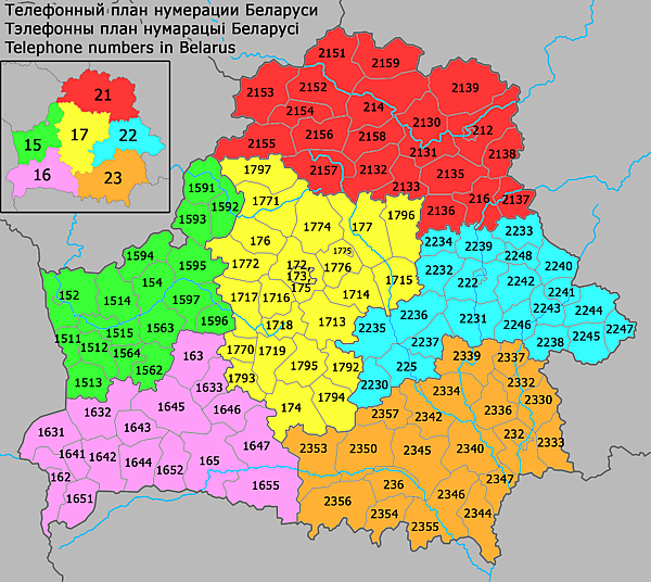 Код зоны (области) состоит из двух знаков, затем следует внутризоновый код населённого пункта (района, 1 или 2 цифры), затем номер телефона. Для Минска и Минского района код района отсутствует, а код области — 17. Формат такой: (+375 17 xxx-xx-xx). Таким образом, чтобы определить по номеру, принадлежит ли он абоненту Минска или Минского района, надо определить, соответствуют ли две цифры после кода области (17) какому-либо коду другого района из Минской области. Если не соответствуют, то принадлежит.
