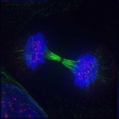 Телофа́за — фаза митотического деления эукариотических клеток, во время которой два набора дочерних хромосом достигают полюсов веретена деления и деконденсируются. Начинается сборка ядерной оболочки вокруг каждого набора хромосом. Разделение цитоплазмы достигается путём сокращения сократительного кольца (цитокинез)[1].