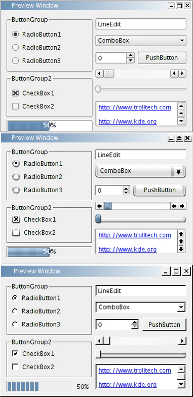 - виджеты (кнопки, списки, флажки-переключатели);