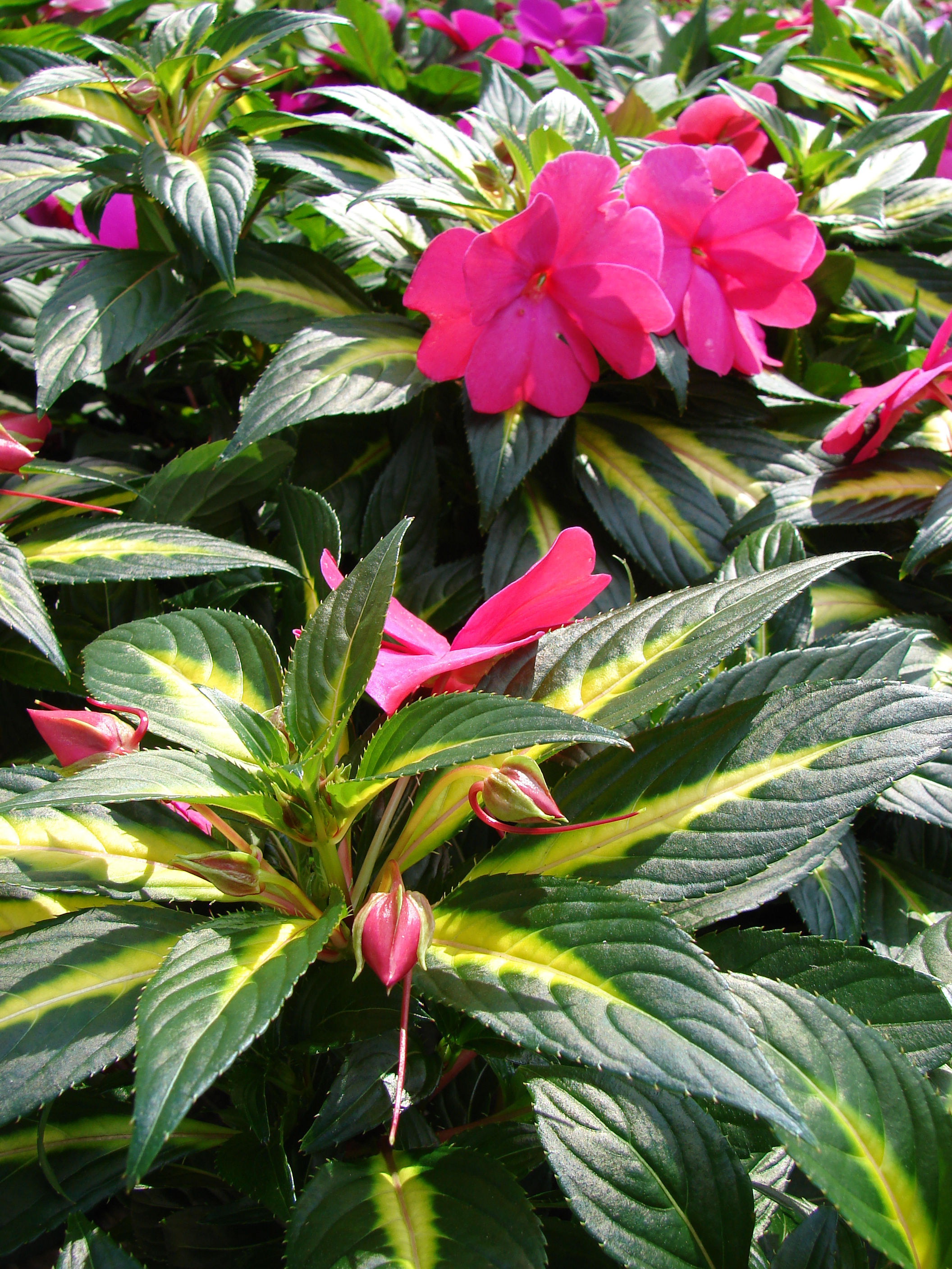 Одни из самых популярных клумбовых растений, отличающиеся пышным, ярким и продолжительным цветением, компактностью, разнообразием окрасок, устойчивостью к загрязнённой городской среде. Используется в озеленении в промышленных масштабах. Имеются пёстролистные культивары. Сорта относительно рослого б. садового используются преимущественно для групповых посадок. Бальзамины — многолетники, культивируемые как однолетники. | ||
