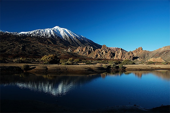 Кроме того, наивысшая точка острова — вулкан Тейде с высотой 3718 м над уровнем моря — является самой высокой точкой Испании[39] и входит в тройку самых высоких вулканов в мире, если считать высоту от его основания, которое находится ниже уровня моря. По этой причине Тенерифе является десятым по высоте островом в мире. Тенерифе включает в себя около также 200 небольших бесплодных островков и крупных скал, включая Рокес-де-Анага, Роке-де-Гарачико и Фасния, которые суммарно добавляют ещё около 213 835 м² к общей площади острова.[37]