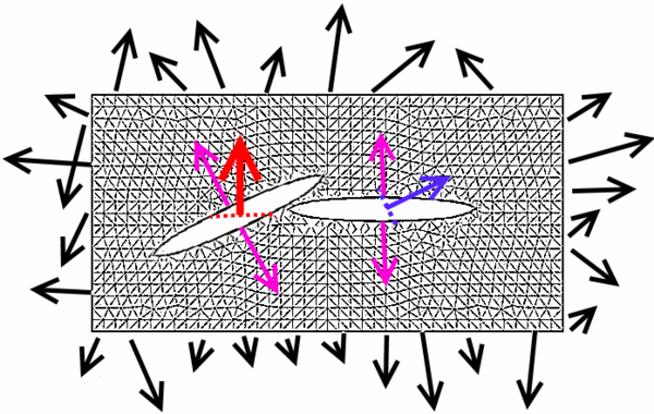 Следует понимать, что разнонаправленные разрезы, совершённые в одной и той же точке тела, повлекут за собой различный отклик ткани. Данное явление показано на рис. Б, где разрастание разрыва ткани происходит по разным направлениям и с разной интенсивностью , в ответ на различные направления первоначальных разрезов и , совершённых в одной и той же точке.
