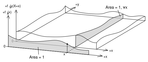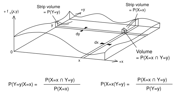 Для двух непрерывных случайных величин X и Y теорема Байеса может быть аналогично выведена из определения условного распределения:
