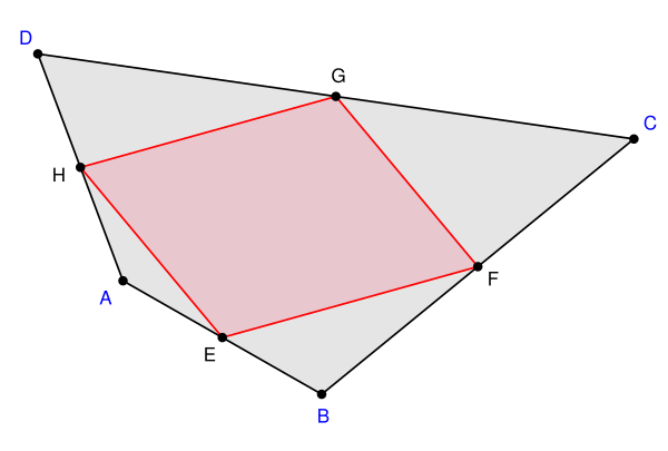 Четырёхугольник, вершины которого совпадают с серединами сторон произвольного четырёхугольника, является параллелограммом, стороны которого параллельны диагоналям исходного четырёхугольника.