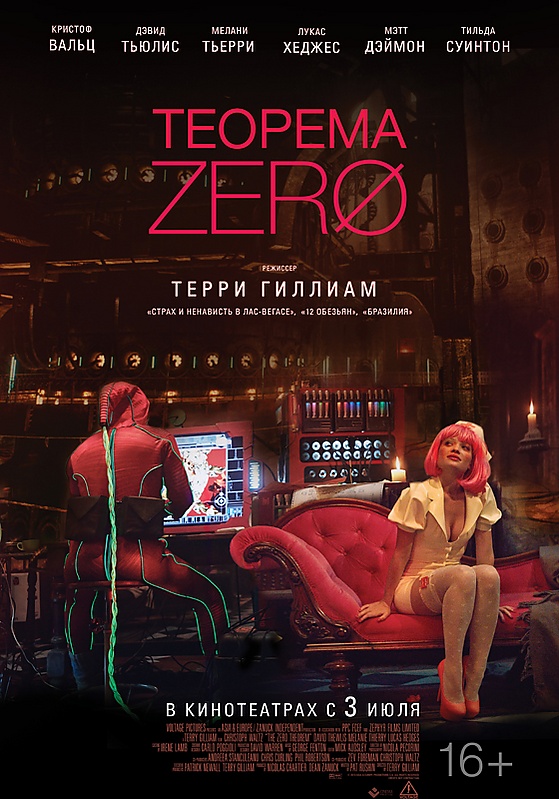 «Теоре́ма Зеро́» (англ. The Zero Theorem) — фантастический фильм Терри Гиллиама[3] по сценарию Пэта Рашина. Фильм в сатирической форме рассказывает о недалёком будущем и учёном, который с помощью математики и виртуальной реальности ищет смысл жизни.