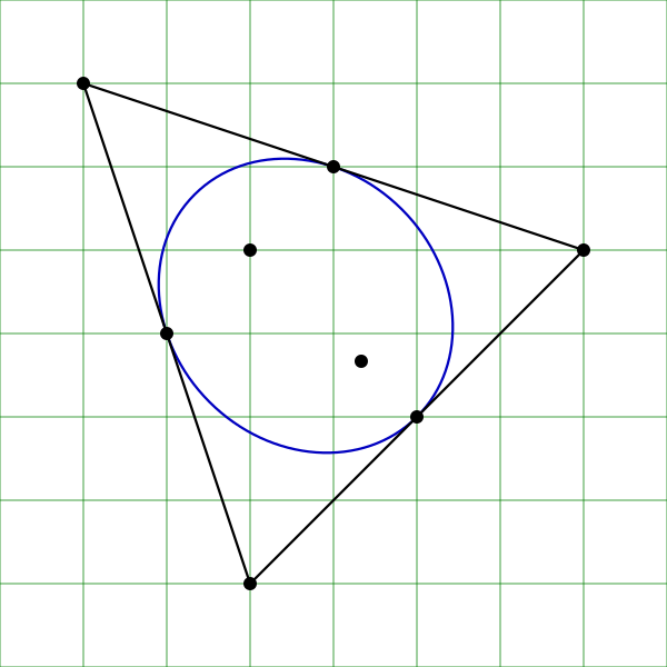 Предположим, что нули z1, z2, z3 многочлена третьей степени неколлинеарны. Существует единственный эллипс, вписанный в треугольник с вершинами z1, z2, z3 и касающийся его сторон в серединах: эллипс Штейнера. Фокусы этого эллипса и есть нули производной . |