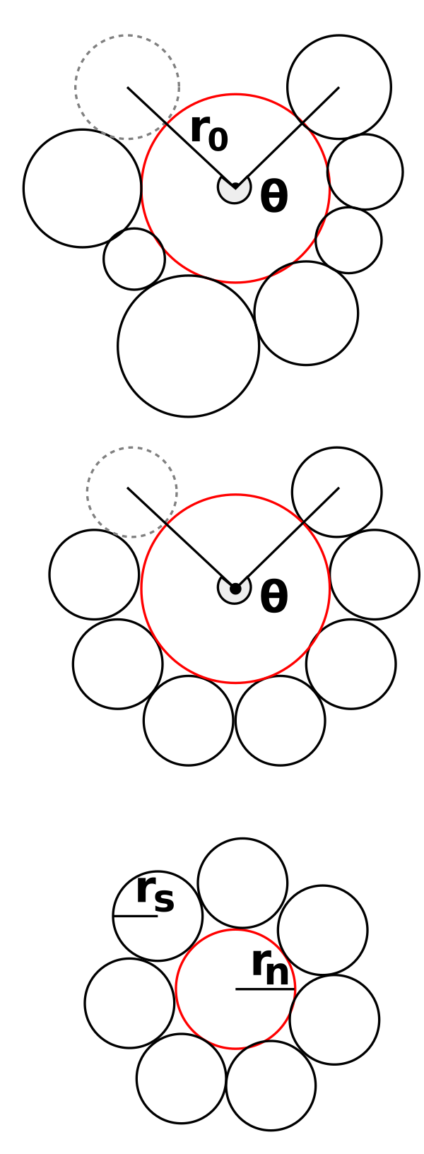 - Вычисляем усреднённый радиус rs для лепестков, такой что k окружностей радиуса rs перекрывают тот же самый угол θ, какой дают соседи v.
