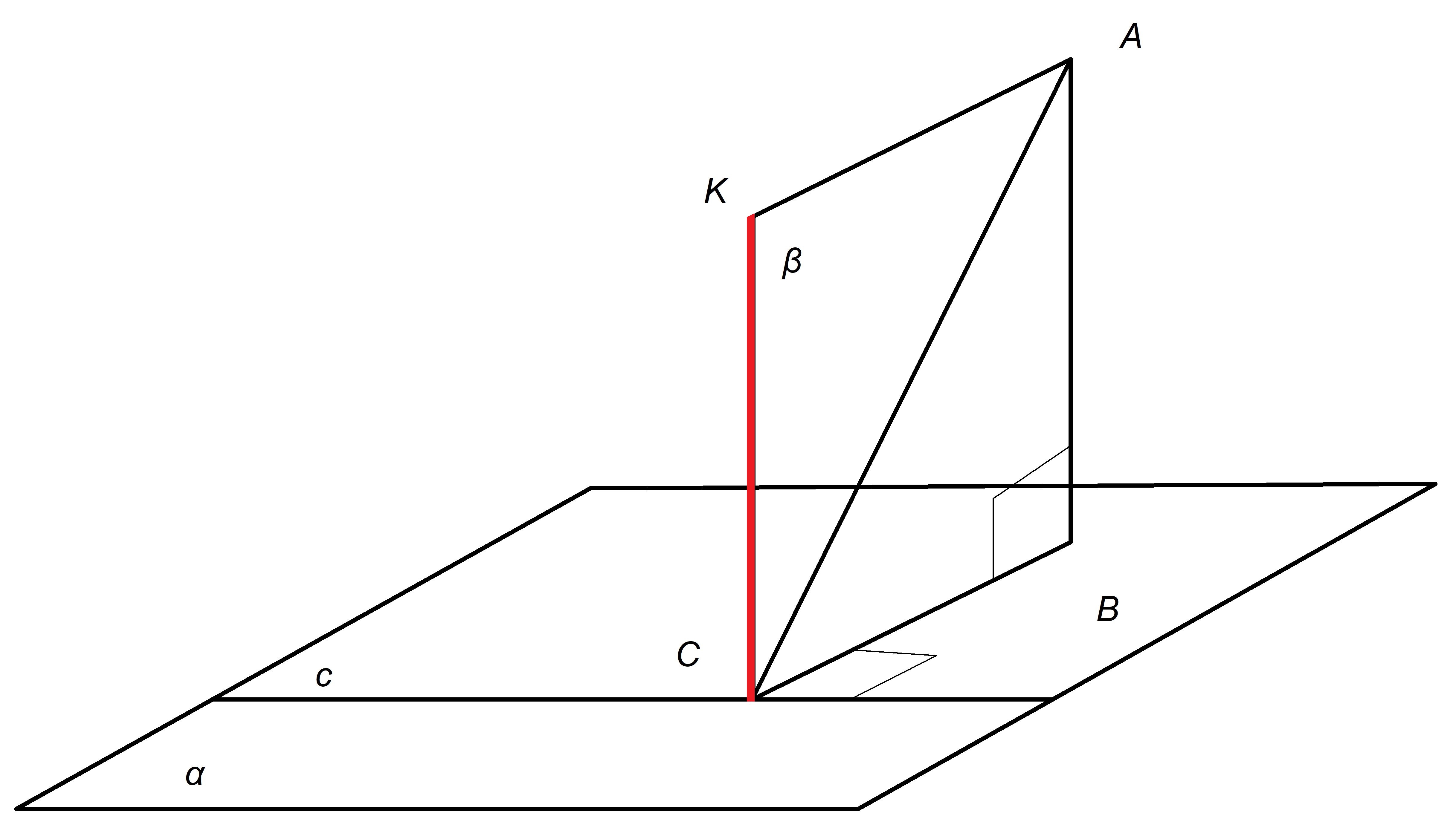 Пусть АВ — перпендикуляр к плоскости α, АС — наклонная и с — прямая в плоскости α, проходящая через основание наклонной С. Проведем прямую СК, параллельно прямой АВ. Прямая СК перпендикулярна плоскости α (по этой теореме, так как она параллельна АВ), а значит и любой прямой этой плоскости, следовательно, СК перпендикулярна прямой с. Проведем через параллельные прямые АВ и СК плоскость β (параллельные прямые определяют плоскость, причём только одну). Прямая с перпендикулярна двум прямым лежащим в плоскости β, это АС по условию и СК , значит она перпендикулярна и любой прямой, принадлежащей этой плоскости, значит перпендикулярна и прямой ВС. Другими словами проекция ВС перпендикулярна прямой с, лежащей в плоскости α.