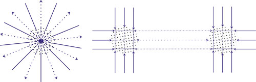 Теория утверждает, что сила гравитации — это результат движения крошечных частиц, двигающихся на высокой скорости во всех направлениях во Вселенной. Интенсивность потока частиц предполагается одинаковой во всех направлениях, таким образом, изолированный объект A ударяется частицами со всех сторон, в результате чего он подвергается давлению внутрь объекта, но не подвергается направленной силе P1.