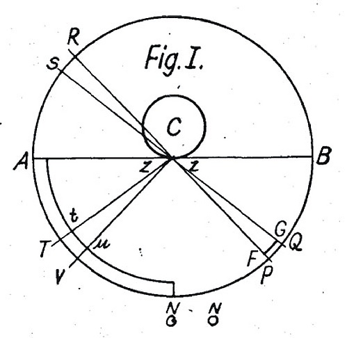 Конденсация[13]: чтобы смягчить противоречия, которые возникли из-за того, что чем меньше скорость корпускул, тем больше корпускул будет аккумулироваться около тел, Фатио предположил, что корпускулы отражаются в пирамиду TzzV. В то же время, если корпускулы приходящие со стороны PQ достигают C, то отражённые частицы не достигают TV, а прибывают в tu. Однако это не приводит к бесконечному накоплению частиц, а только к конденсации, т.к. увеличенная плотность остаётся постоянной. Фатио указал на то, что, продолжая увеличивать скорость, Tt может стать сколько угодно малым по отношению к TZ.