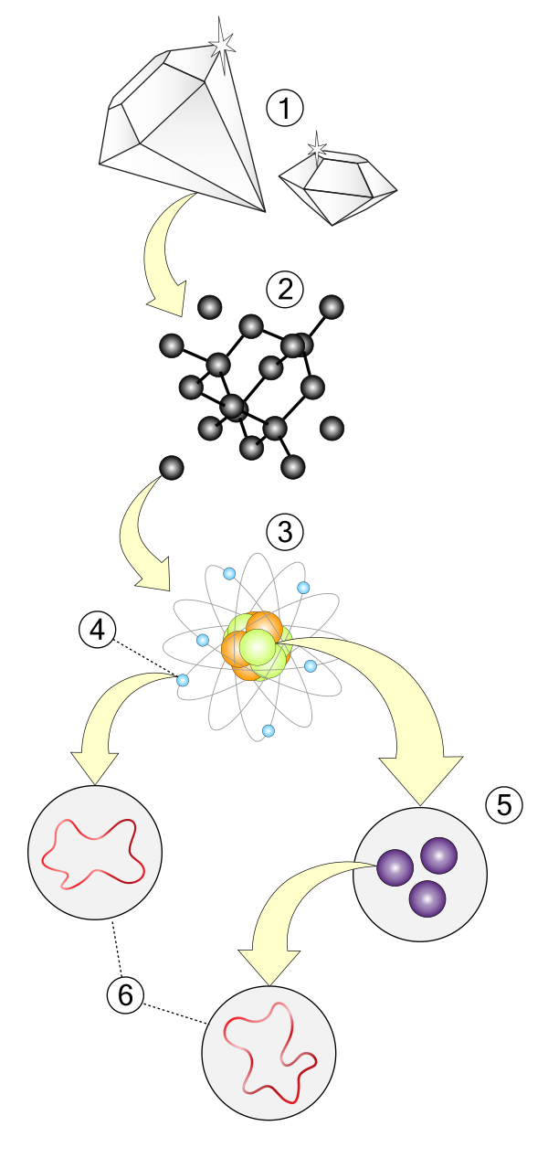 Классическая аналогия, используемая при рассмотрении многомерного пространства, — садовый шланг[49]. Если наблюдать шланг с достаточно далёкого расстояния, будет казаться, что он имеет только одно измерение — длину. Но если приблизиться к нему, обнаруживается его второе измерение — окружность. Истинное движение муравья, ползающего по поверхности шланга, двумерно, однако издалека оно нам будет казаться одномерным. Дополнительное измерение доступно наблюдению только с относительно близкого расстояния, поэтому и дополнительные измерения пространства Калаби — Яу доступны наблюдению только с чрезвычайно близкого расстояния, то есть практически не обнаруживаемы.