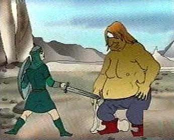 Отрывок о схватке сына Бейбуры с Тепегёзом из рассказа Анара «Деде Коркут»: