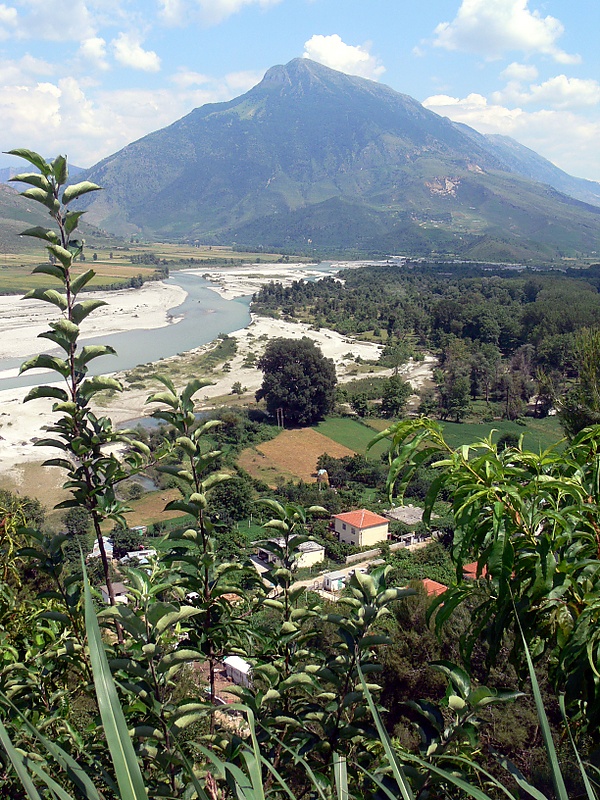 На востоке горную цепь Грибских гор разрывает река Вьоса, протекая по ущелью Gryka e Këlcyrës и сливаясь с Дрином немного южнее Тепелены. По мере приближения к северо-западу, к Адриатическому морю, долина Вьосы становится все шире, а окружающая местность все менее гористой.