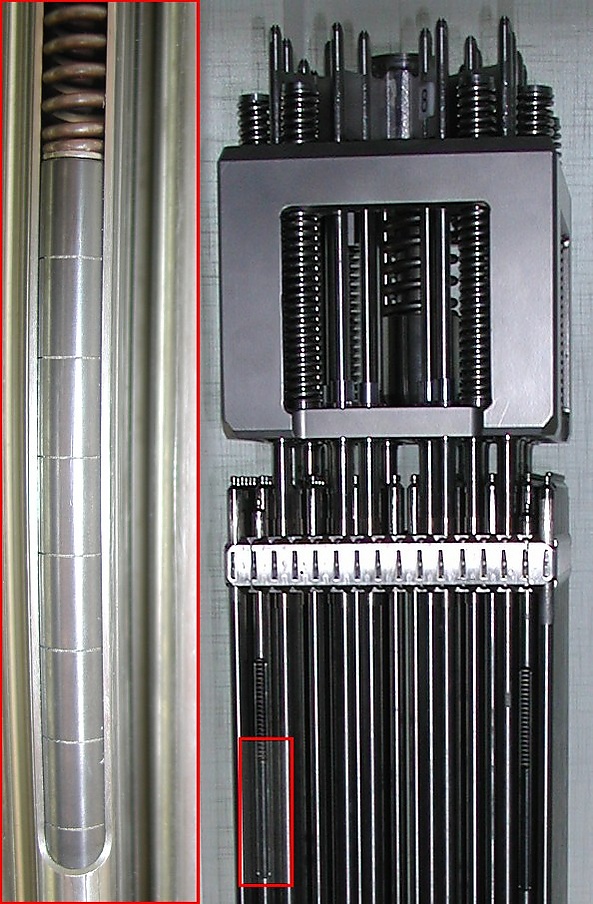 При номинальной мощности давление гелия достигает 80—100 атм, а топливный сердечник твэла удлиняется от нагрева на 30 мм.