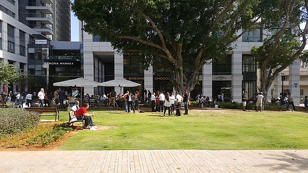 Квартал Сарона — бывшее немецкое поселение темплеров, которые были депортированы из подмандатной Палестины за поддержку нацистской идеологии и Гитлера. В 2012 году территория комплекса была отреставрирована и заново открыта для широкой публики в 2014 году. Расположено напротив здания Генштаба (северная сторона) Армии обороны Израиля, с восточной стороны к кварталу примыкает башня правительственных учреждений Израиля. От квартала начинается улица ресторанов и баров — А-Арбаа.