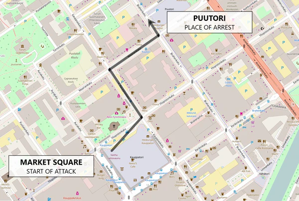 18 августа, около 16:00 на центральной Торговой площади в городе Турку 18-летний гражданин Марокко устроил массовую резню, в ходе которой пострадали в общей сложности 10 человек (1 скончалась на месте, 9 были госпитализированы, при этом ещё 1 скончалась в больнице, трое находятся в реанимации, остальным оказана оперативная медицинская помощь). Погибли две гражданки Финляндии (1951 и 1986 года рождения[7]), а среди пострадавших, кроме граждан Финляндии, были 1 гражданин Италии, 1 гражданин Швеции и 1 швед, подданный Великобритании[8]. Возраст получивших ранения — от 15 до 67 лет. Один из раненых — младше 18 лет. Все остальные — совершеннолетние.