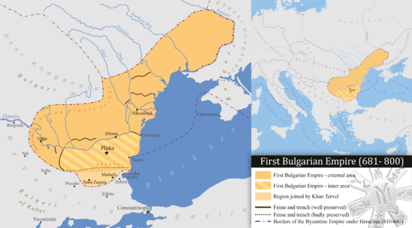Здесь послал он Стефана к Тервелию , владетелю Болгарии, просить содействия, чтобы возвратить ему свой наследственный престол, и за то обещал ему великие дары, обещал выдать за него дочь свою. Тервелий обещался во всем повиноваться ему и содействовать, с честью принял Стефана [принял Юстиниана с почестями] и двинул все подвластные ему народы болгар и славян. В следующем году они с полным вооружением прибыли в царствующий град.[2]Летопись Феофана Исповедника