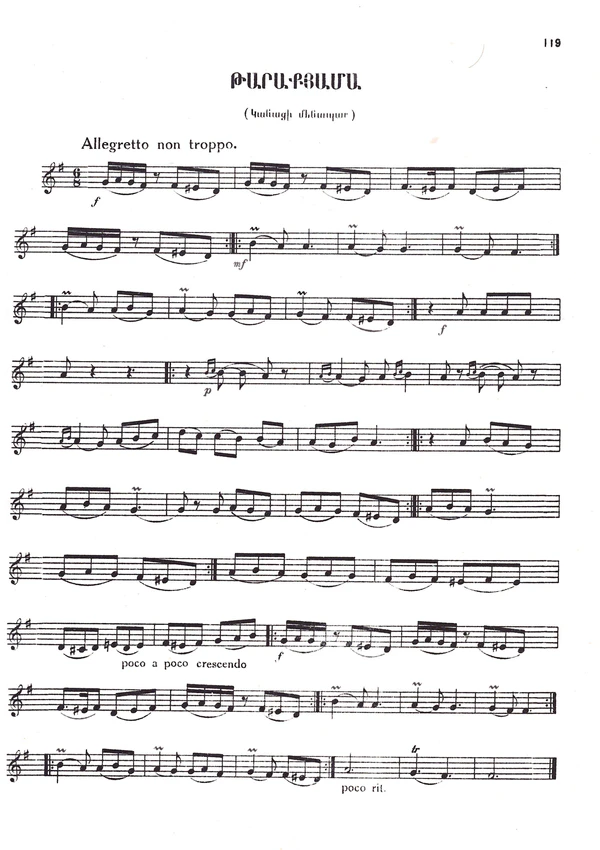 Танцевальная мелодия «Таракяма» была записана армянским фольклористом Аршаком Брутяном в Александрополе в конце XIX века[17].