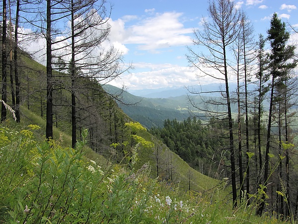 На Теректинском хребте леса преимущественно лиственничные и березово-лиственничные. В долинах притоков Катуни и Чуи произрастают темнохвойные леса. В узких, слабо освещенных долинах, распространены леса еловые. Степные и лугово-степные ландшафты преобладают в межгорных котловинах.