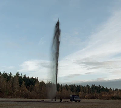 Сцены на нефтеперерабатывающей станции были отсняты на тепловой электростанции в Порт Муди, Британская Колумбия[4]. Для сцены взрыва нефтескважины специалист сериала по спецэффектам, Дэвид Готье, построил копию колонной головки в заброшенной каменоломне. Конструкция была смоделирована таким образом, что в сцене выброса в воздух гигантского потока нефти в кран под большим давлением подавалась окрашенная в цвет нефти вода. При взрыве же оператор конструкции дистанционно переключал механизм на подачу керосина и жидкого пропана, что позволило создать огненную шапку высотой около 90 метров[4][3].