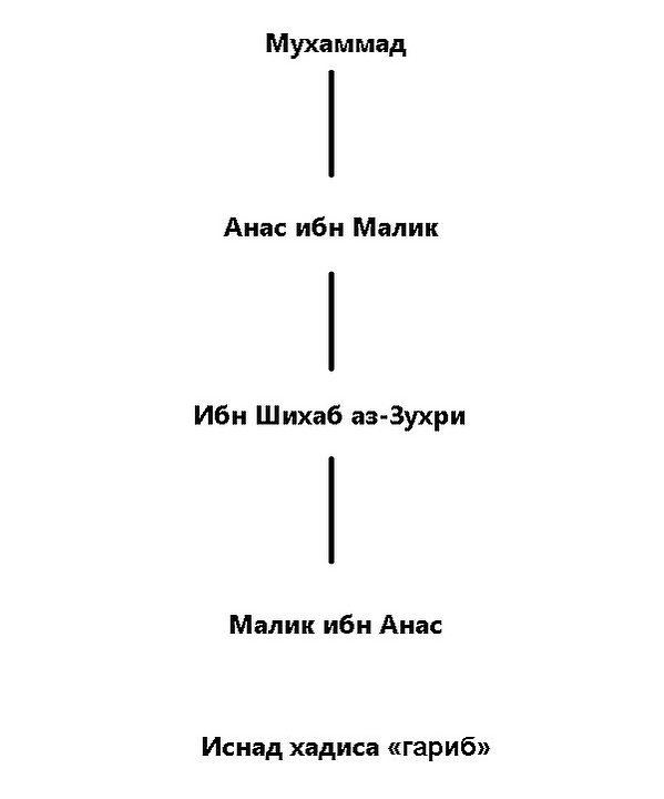 - Гариб мутлак (абсолютно неизвестный) — хадис, первый передатчик которого один-единственный человек.