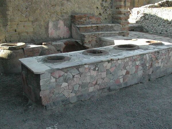 Термополии были найдены во многих римских поселениях: в Остии, Геркулануме, в Помпеях термополий Аселлина сохранился полностью с обстановкой.
