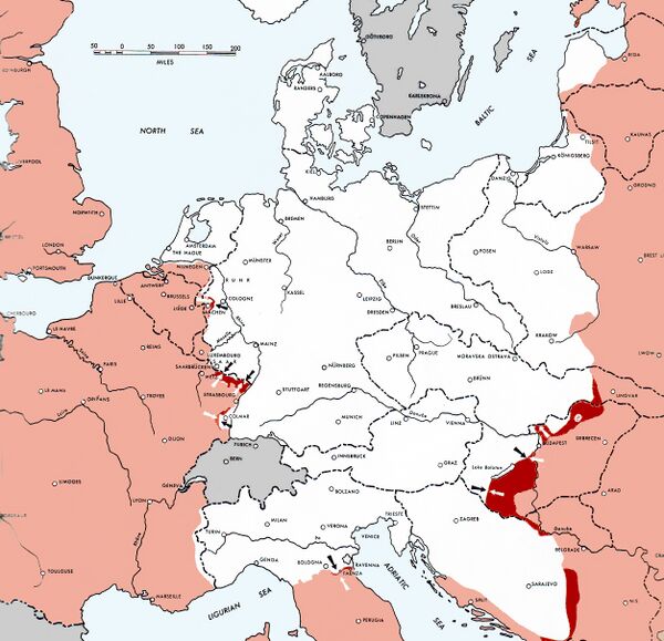 - 13 сентября 1939 года Франция заняла два небольших выступа германской территории в Сааре — участок «Варндт» западнее Саарбрюккена и выступ границы между Саарбрюккеном и Пфальцским Лесом. Когда стала заметной передислокация немецких соединений, освободившихся после войны с Польшей, французы, начиная с 3 октября, отошли обратно к государственной границе, а местами и за неё.
