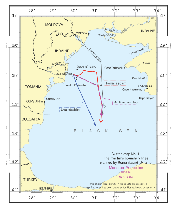 16 сентября 2004 года Румыния внесла иск против Украины, касающийся делимитации морских границ исключительной экономической зоны и раздела континентального шельфа в Чёрном море. 3 февраля 2009 года суд огласил решение, которое устанавливает морские границы между государствами и определяет исключительные экономические зоны Румынии и Украины. При этом обе стороны выразили удовлетворение решением и заявили о победе в споре.