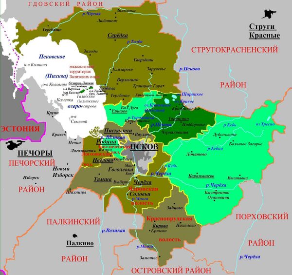 | Адм. центр | д.Остров им. Залита / г.Псков как райцентр Псковского района |