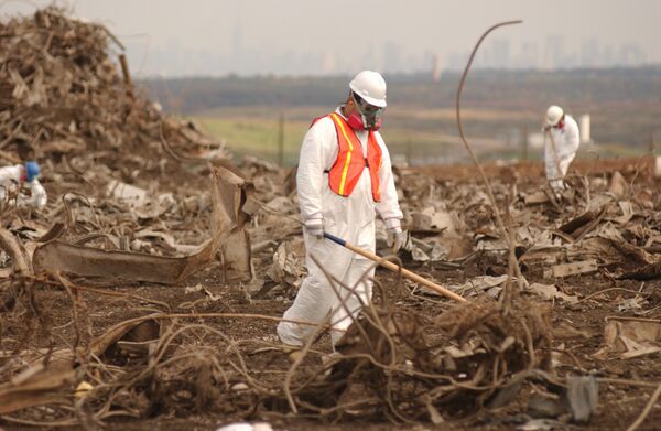Тысячи тонн токсичного мусора, образовавшегося в результате обрушения башен ВТЦ, содержали не менее двух с половиной тысяч различных компонентов[127]: 50 % — строительный мусор и другие неволоконные материалы, 40 % — стекло и волоконные материалы, 9,2 % — целлюлоза, 0,8 % — асбест[128], а также свинец и ртуть. Кроме того, из-за продолжавшихся несколько месяцев пожаров в атмосферу было выброшено чрезвычайно большое количество диоксина и полициклических ароматических углеводородов (ПАУ)[129]. Некоторые из попавших в окружающую среду материалов канцерогены (кристаллический диоксид кремния, свинец, кадмий, ПАУ) могут вызвать заболевания почек, сердца, печени или центральной нервной системы[130].