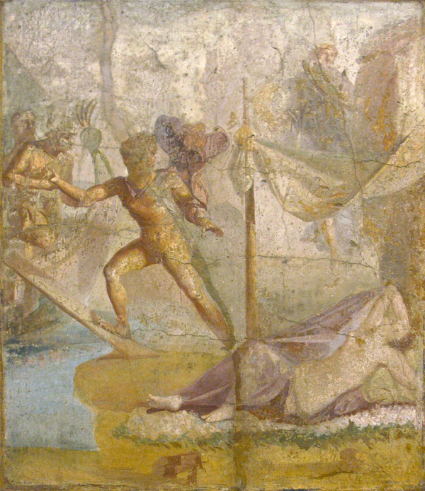 Посадив на корабль своих афинских спутников и Ариадну, Тесей немедленно отплыл в сторону Аттики (согласно Ферекиду, чтобы не было погони, он приказал прорубить днища критских кораблей[43]). Из-за бури герой задержался на острове Дия, который позднеантичные писатели отождествляют с Наксосом[44]. Там он бросил Ариадну[45]. Античные авторы по-разному объясняют причины: Тесей либо решил, что афиняне враждебно встретят критянку[46], либо полюбил другую (дочь Панопея Эглу), либо во сне услышал приказ Диониса отказаться от девушки. По ещё одной версии, Ариадна, будучи уже беременной, умерла во время стоянки на Кипре. Согласно классическому варианту мифа, Тесей оставил Ариадну, когда она спала. Царевна либо повесилась с горя[47], либо стала возлюбленной Диониса[48].