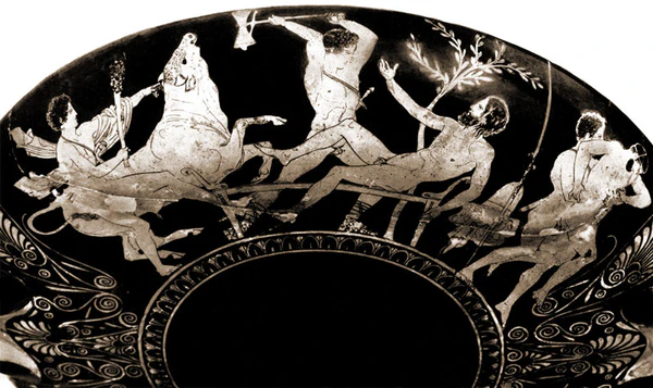 Ближайшим другом Тесея стал Пирифой — царь лапифов из Фессалии, тоже отличавшийся храбростью и силой. Этот герой предпринял набег на Аттику специально, чтобы познакомиться с афинским царём. Он высадился у Марафона и угнал стадо царских коров; Тесей пустился в погоню, а Пирифой не стал убегать. По словам Плутарха, когда «оба мужа завидели друг друга, каждый был восхищён красотою и отвагой противника». Они не начали сражаться: Пирифой объявил, что примет от Тесея любое наказание за угон скота, а тот простил его и тут же предложил дружбу. Герои на месте скрепили свои отношения клятвами[76]. По альтернативной версии, Пирифой приехал в Аттику после убийства родича, чтобы очиститься[77].