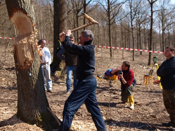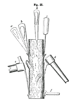Главным же орудием не только столяра или плотника, но даже средневекового дровосека было тесло—очень старый, простой инструмент типа кирки, орудие великих средневековых расчисток, которые были нацелены скорее на молодые поросли и кустарники, чем на строевой лес, перед которым средневековый инвентарь оставался чаще всего бессильным.