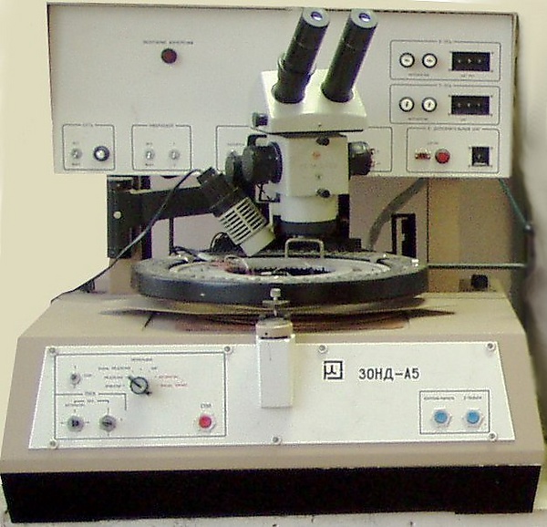 Тестировщик полупроводниковых пластин (установка автоматической разбраковки пластин) это устройство, использующееся для проверки интегральных схем, сформированных на пластине до порезки на отдельные чипы. Для электрического тестирования набора чипов полупроводниковых приборов или ИС на пластине используются так называемые «зондовые платы» (probe card) либо зондовые держатели, содержащие набор зондов (например игл для электрического контакта) удерживающиеся на месте (или подвижные по вертикали) в то время как пластины, вакуумно прикрепленные к подвижному патрону, могут перемещаться в двух (трех) координатах плюс вращение. Таким образом тестировщик перемещает набор зондов в позицию над одним из чипов и опускает на него зонды. Когда один чип протестирован тестировщик перемещает пластину на следующий чип, и дает сигнал на проведение следующего теста. Тестировщик полупроводниковых пластин, как правило, отвечает за загрузку и выгрузку пластин из транспортной тары (или кассеты) и оснащен оптикой автоматического распознавания, способной выравнивать пластину с достаточной точностью, чтобы обеспечить точное позиционирование кончиков зондов на контактных площадках на подложке [1].