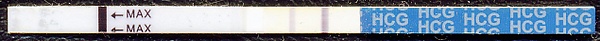 Самый популярный тест — стрип-полоска, на которой беременность обозначается двумя полосками, её отсутствие — одной. На бесцветную вторую полоску теста нанесены специфические антитела к ХГЧ. Если в момент проведения теста в моче женщины его концентрация достаточно велика, место с нанесёнными антителами окрашивается и проявляется вторая полоска[3].