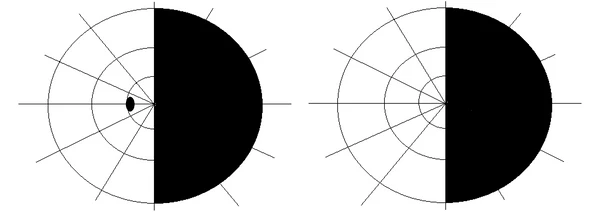 Примеры нарушения полей зрения: