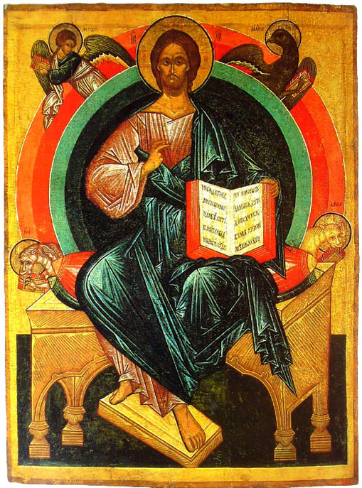 В системе росписи православного храма тетраморфы могли изображаться в парусах купола вместо собственно евангелистов, либо же вместе с ними.[34] В иконе «Единородный Сыне» Спас держит в руке небольшой тетраморф.