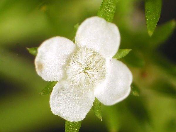 Цветки одиночные, пазушные или верхушечные. Цветки очень мелкие, радиальносимметричные, гермафродитные, четырёхчленные, с двойным околоцветником. Четыре колоколообразных чашелистика срастаются. Четыре лепестка могут как срастаться, так и оставаться свободными и колоколообразными. Четыре свободные фертильные тычинки располагаются в один круг. Два плодолистика, срастаясь, формируют верхнюю или нижнюю завязь. Столбик с небольшим рубцом. Полость завязь вторично разделяется ложными перегородками на 4 отсека.